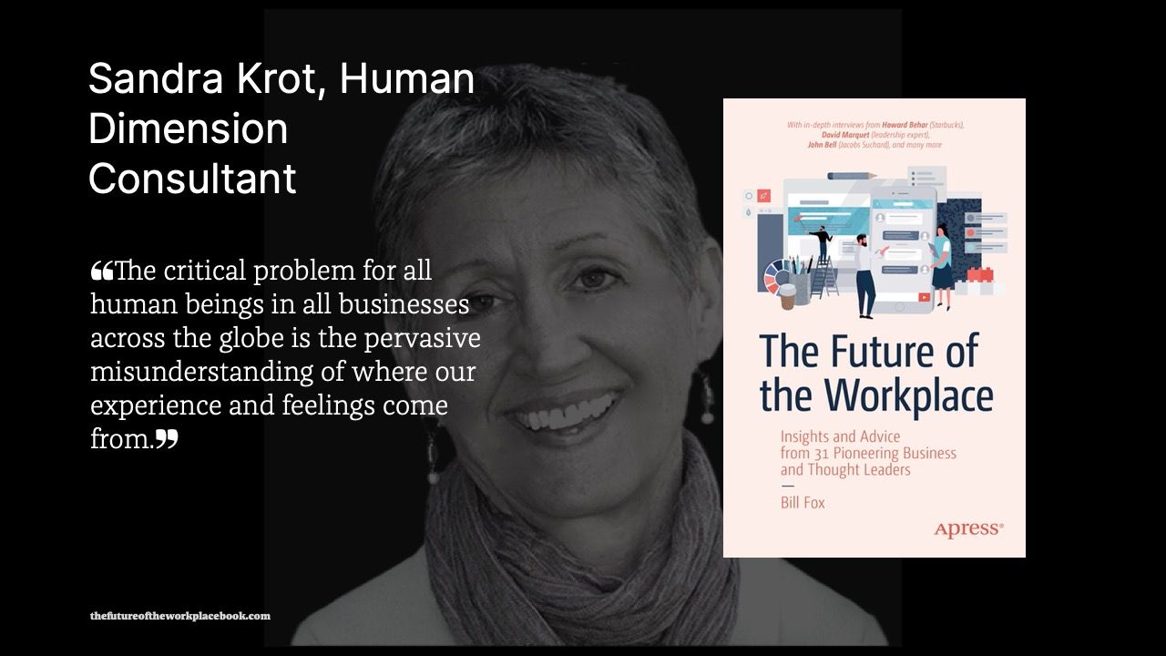 Sandra Krot: I’d like to answer that question from three different perspectives: the perspective of the individual person in an organization or business, the perspective of the leader in an organization or business, and the perspective of people like you and me who are wanting to be of service to businesses. I’ll start with the individual because what I have to say is the foundation for all three categories.